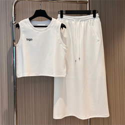 Ropa de diseñador de lujo clásica caliente, ropa deportiva para mujer, camisetas sin mangas y faldas de algodón 100%, conjunto informal de dos piezas para mujer