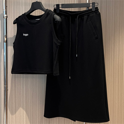 Sıcak klasik lüks tasarımcı kıyafetleri bayanlar spor giyim % 100% pamuk kolsuz tank Tops ve etekler kadınlar rahat iki parçalı Set