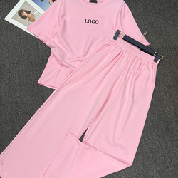 カスタムロゴ女性服半袖Tシャツツーピース服プリントロゴトラックスーツセット豪華なデザイナー女性服